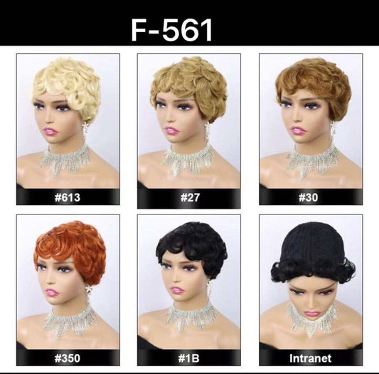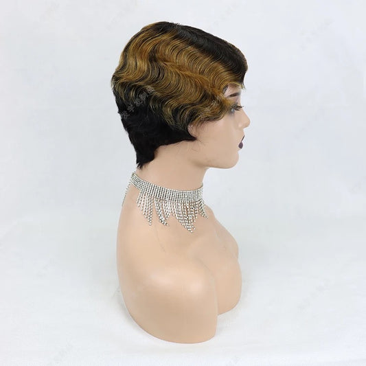 T Lace Finger Curl Pixie Glueless Human Hair Wig